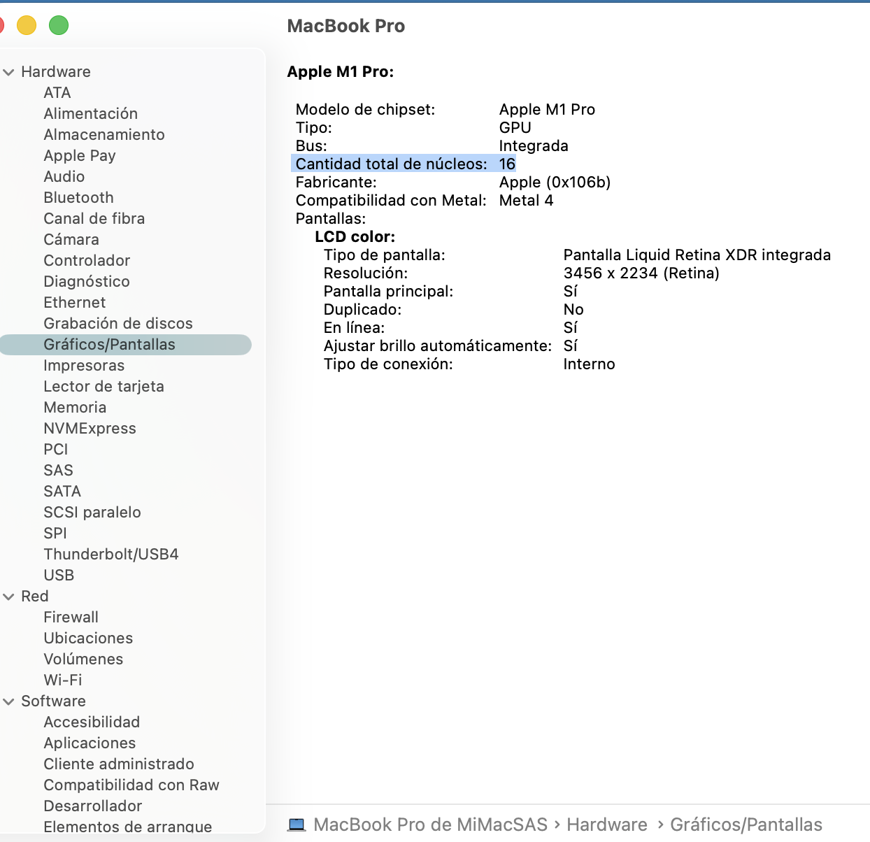 • Procesador: Chip M1 PRO de 16 Nucleos